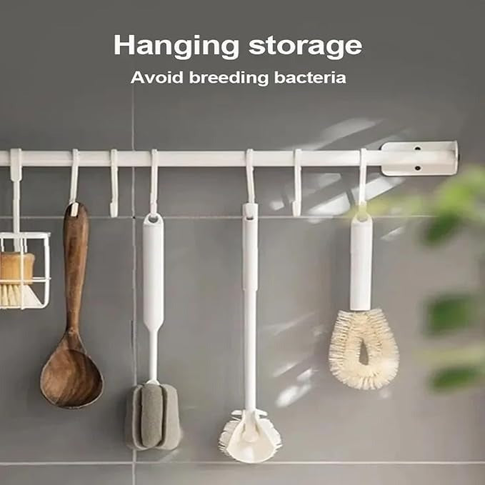 Effortlessly clean your bottles and glassware with our Water Bottle Brush. Crafted from food-grade polypropylene and soft silicone, this brush ensures safe, odor-free cleaning for all your kitchen containers. The 12-inch long handle allows easy access to deep bottles, while the foldable brush head provides 360° all-around cleaning, reaching those hard-to-get spots.